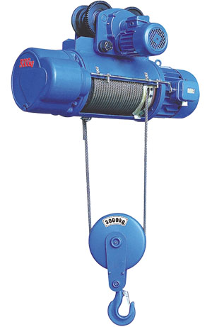 钢丝绳电动葫芦的吨位是0.5T/1T/2T/3T/5T/10T/16T/20T,它的标配钢丝绳米数,6M/9M/12M/18M/24M/30M。它还分为CD1(单速型)和MD1(双速型), 下面为钢丝绳电动葫芦的运行速度: 0.5T-5T 10T 16T-20T 单速:8M/MIN 单速:7M/MIN 单速:3.5M/MIN 双速:8M/MIM ,0.8M/MIN,双速:7M/MIN,0.7M/MIN 双速: 3.5M/MIN,0.35M/MIN